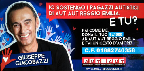 Anche Giuseppe Giacobazzi sostiene i ragazzi autistici di Aut Aut Reggio Emilia, non ti costa nulla! Grazie per il tuo contributo!
