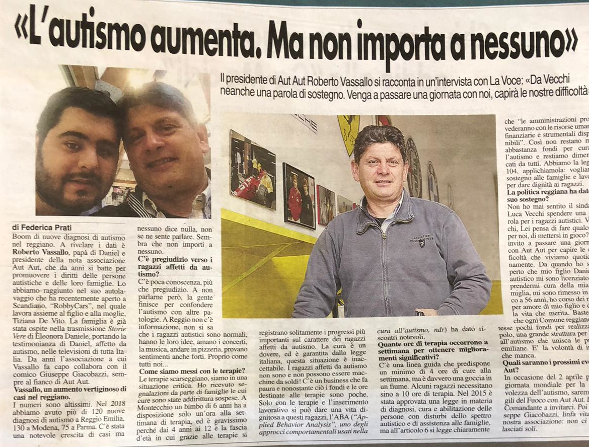 Il presidente di Aut Aut Roberto Vassallo si racconta in un'intervista con la Voce: Da vecchi neanche una parola di sostegno. Venga a passare una giornata con noi, capirà le nostre difficoltà. Apri il file in pdf